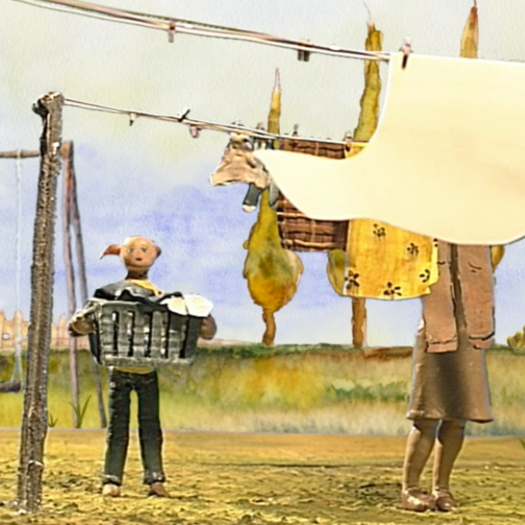 La technique des marionnettes, dite « volume », nécessite la fabrication d’un squelette articulé, puis d’une enveloppe de divers matériaux pour l’habillage. L’appareil photo est installée sur un pied, au sol.